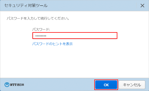 パスワードの画面が表示されましたら、パスワードを入力していただき、