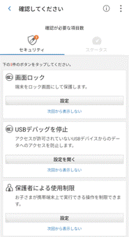 アプリの安全性チェックは、Android 端末本体のセキュリティに関する設定についてもスキャンを行います。
