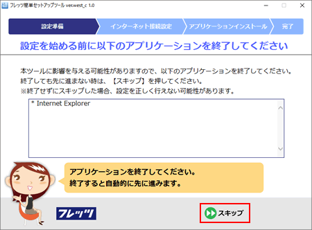 表示されているプログラムを閉じると、画面が自動的に次へ進みます。