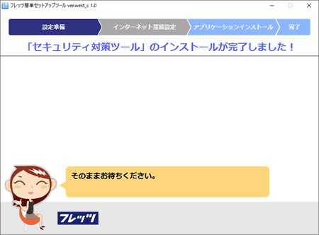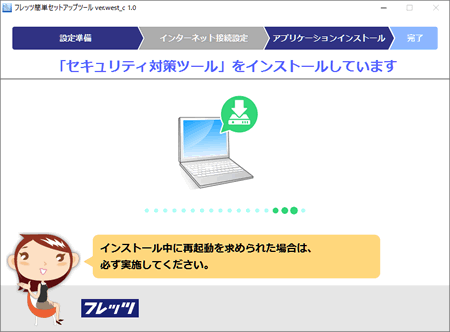 セキュリティ申込・設定ツールのインストール進捗状況が表示されます。