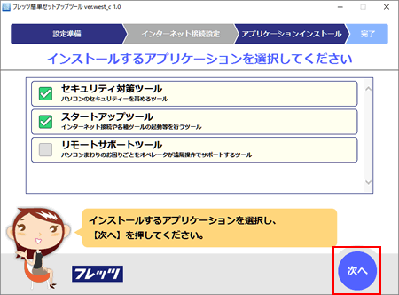 ※ 他のアプリケーションをインストールしない場合は、チェックをはずしてください。