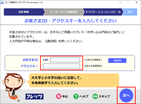 アクセスキーの入力時は、大文字と小文字にご注意ください。