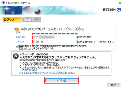 [ アクセスキー ] の入力内容に間違いがないかご確認ください。